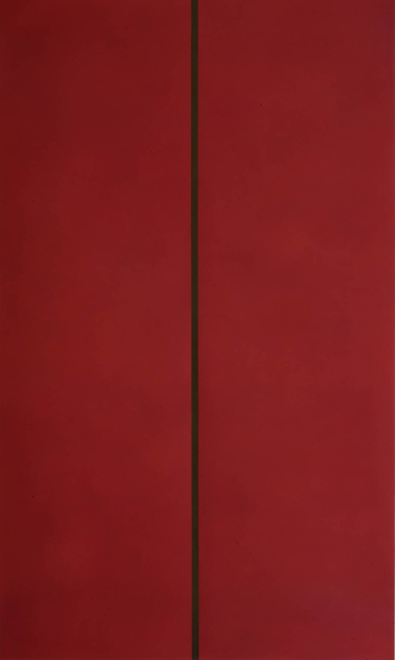 Three flat rectangular things with a stripe of colour running centrally from top to bottom, produce the effect of simultaneous contrast. Each of the central stripes is modified by the context in which ‘it finds itself’. Such stuff is commonplace. They stand, paper on aluminium, off the wall, crisp edged in the eye. What are they? They are displayed in the manner of ‘pictures’, have some pictorial attributes.