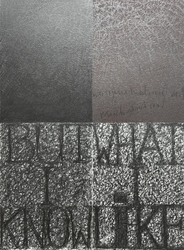 I came across the work of Richard Forster at the De La Warr Pavilion(1) some time ago. Forster works from reproductions printed from digital images and photocopies of digital images. Images in a sense pushed against their grain through reproductive processes. What I see in Forster’s work and glean from his thoughts, is a notion of intense labour. The work itself at first sight has something of the photographic image about it. There is a temptation to admire extremes of technique as ends in themselves. There seems to be in this obsessive and insistent making, something that tests the artist and a need to be tested - again and again. It is as though through ‘being’ an artist, behaving as an artist, the business of making, the physical experiences of touch and sight, surprise and delight, as well as their opposites, serves to validate, to somehow make real, confirm within place and time, space and duration, the solid material being of something that turns out to be a person with a name and continuity and which is at once powerful and fragile.